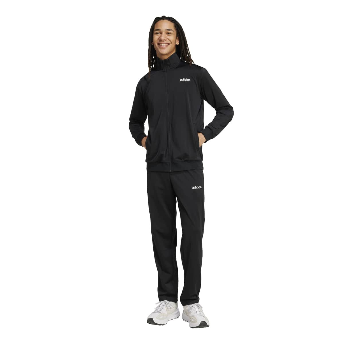 Este agasalho da adidas tem tudo a ver com estilo fácil. Vista uma malha suave e macia e você estará pronto para sair. A gola alta oferece cobertura adicional e a cintura elástica com cordão ajustável garante o justo perfeito. Os bolsos da jaqueta e da calça guardam sua identidade e chaves.