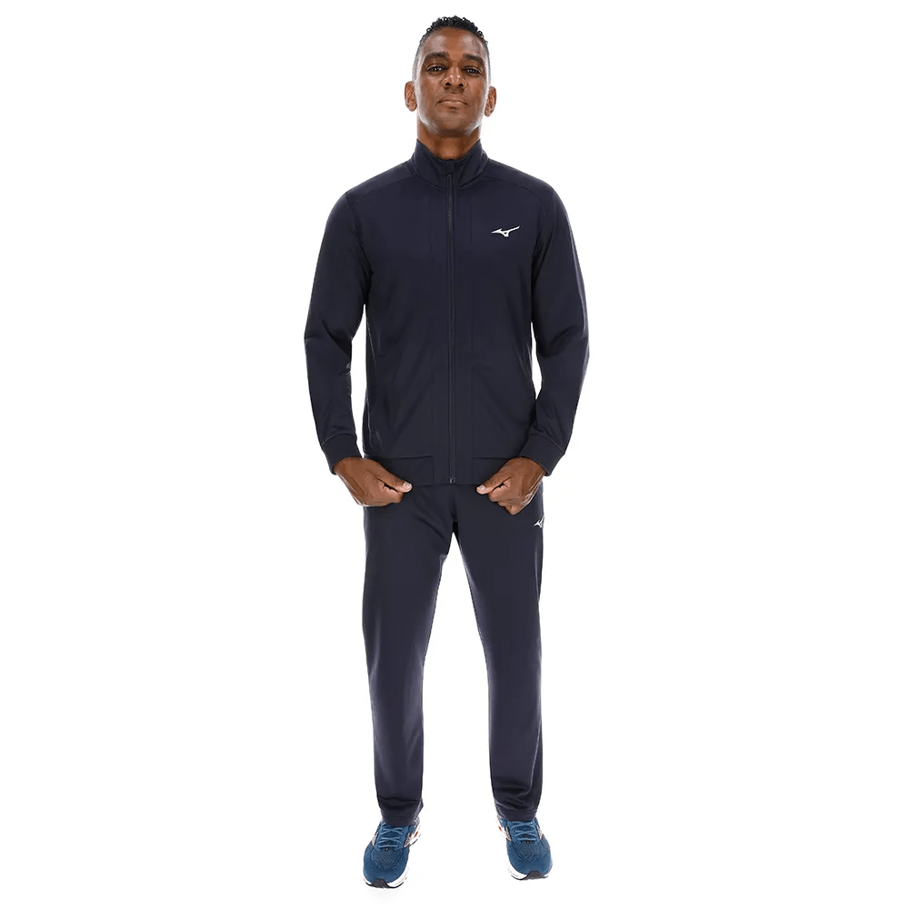 Agasalho em malha de poliéster com modelagem tradicional. Bolsos frontais. Barras da jaqueta em rib. Logo bordado.