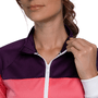 Bolsos frontais na jaqueta com abertura de zíper.