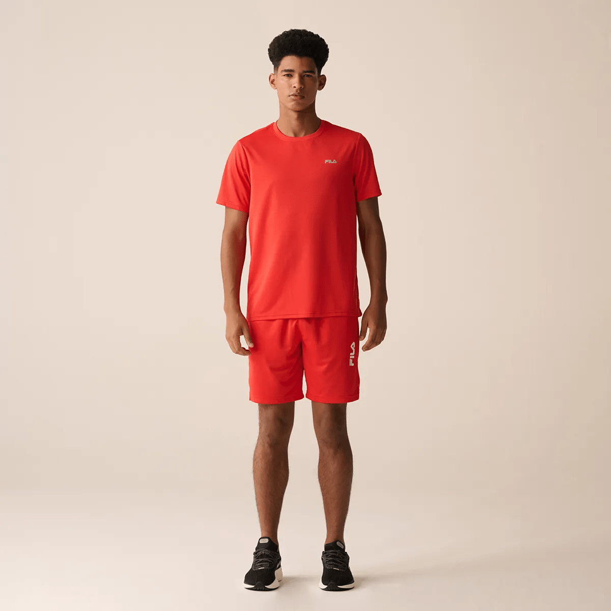 Bermuda masculina confeccionada em malha texturizada sustentável de poliéster reciclado, indicada para treinos de baixa e média intensidade. Modelagem regular. Seu tecido contém a tecnologia FLOW, que proporciona rápida secagem e evasão do suor, mantendo o corpo na temperatura ideal para a prática esportiva. Possui cós franzido de elástico, bolsos laterais, aberturas laterais na barra para maior mobilidade e logo Fila Letter vertical em termo com relevo aplicado na lateral esquerda.