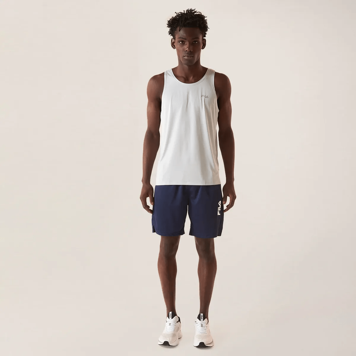 Bermuda masculina confeccionada em malha texturizada sustentável de poliéster reciclado na modelagem regular. Indicado para treinos de baixa e média intensidade, contém a tecnologia FLOW, que proporciona rapidez e evasão do suor, mantendo o corpo na temperatura ideal para a prática esportiva. Possui cós franzido de elástico, bolsos laterais, aberturas laterais na barra para maior mobilidade e logotipo FILA Linear vertical em termo com relevo aplicado na lateral esquerda.