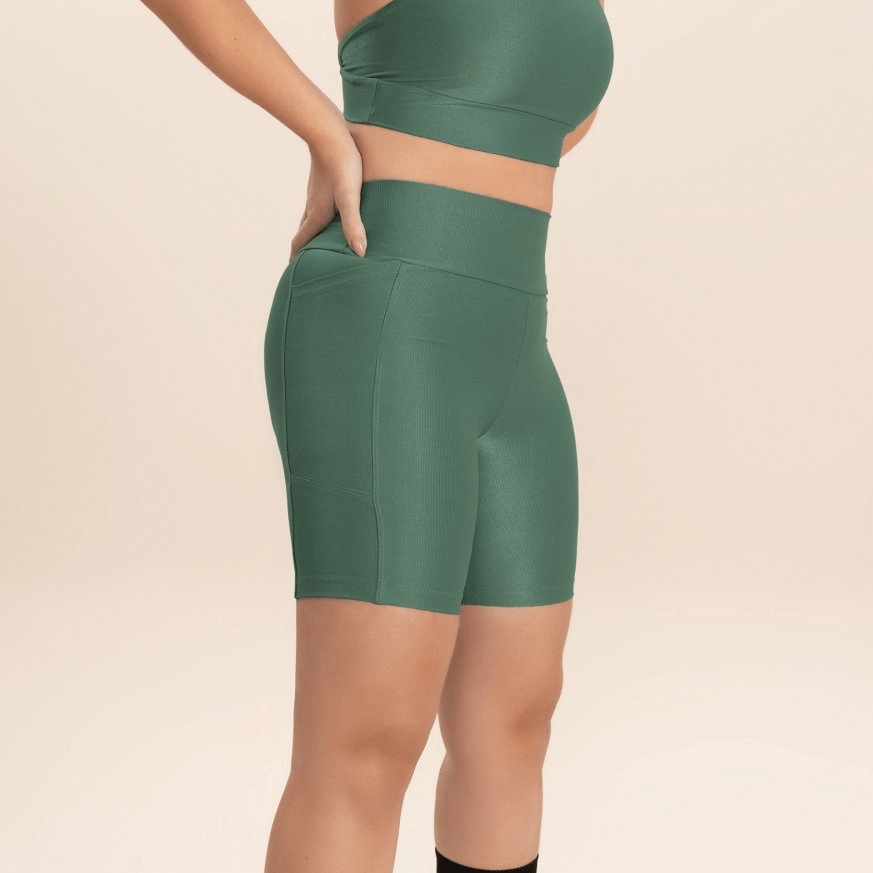 A bermuda possui a modelagem de compressão alta que valoriza as pernas.