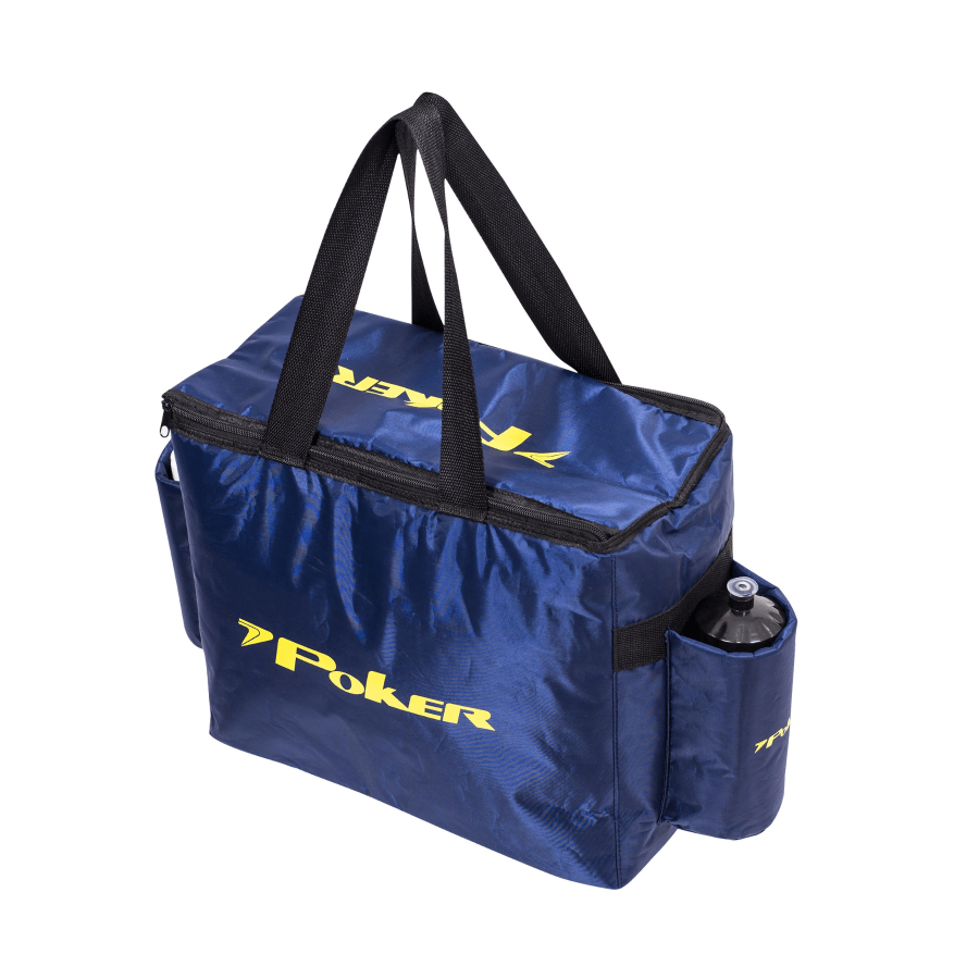 Confeccionada em poliester resinado. Com bolso interno, isopor e duas garrafas plásticas.