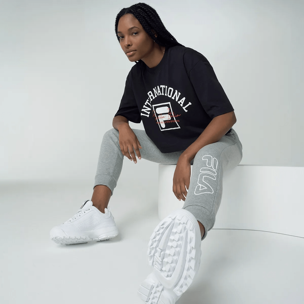Enfrente o inverno com estilo e conforto com a Calça Algodão Feminina FILA Classic Winter. Confeccionada em moletom felpado de algodão com poliéster, essa peça traz modelagem jogger regular com cintura média. O produto traz certificação ecológica.