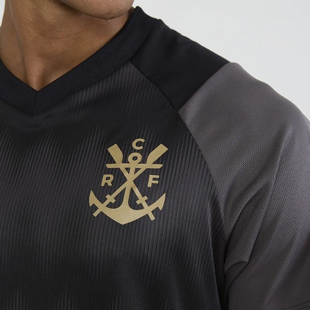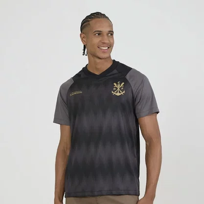 Camiseta raglan em tons de preto e cinza, confeccionada em Dry Max, tecido leve com excelente caimento que garante conforto e alta respirabilidade, mantendo a pele seca. O design traz gola em V, estampa do escudo e assinatura do clube no peito em dourado, destacando-se pela estampa em toque zero inspirada na vibração do canto da torcida, transmitindo toda a emoção e paixão das arquibancadas.