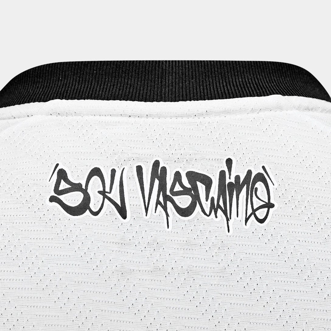 A Camisa Vasco II 2025 da Kappa é a escolha perfeita para os torcedores apaixonados vestirem seu orgulho. Com design elegante e tradicional, traz o branco como cor predominante e a icônica faixa transversal preta. Confeccionada em poliéster e elastano com tecnologia no tecido, oferece conforto, leveza e respirabilidade. O escudo do clube bordado se destaca no peito. Detalhes como a frase “Sou Vascaíno” na nuca e “Jamais terá a cruz. Este é meu batismo” no interior da gola reforçam a identidade cruzmaltina. A gola em V, punhos e nuca em preto completam o visual moderno e fiel à história do Vasco.