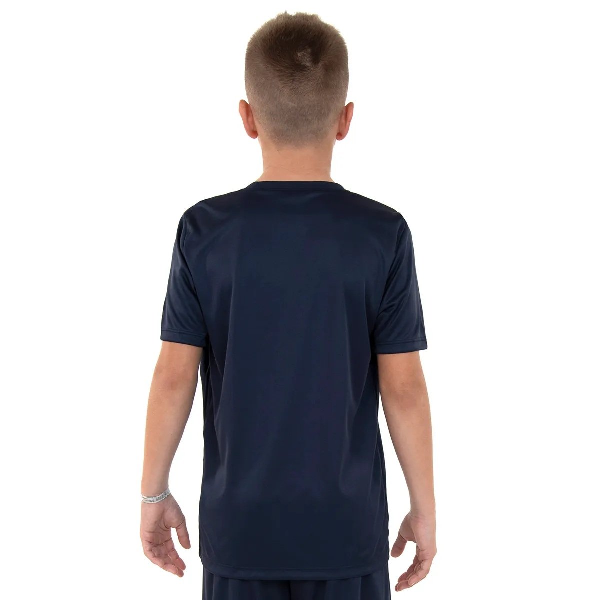 Camisa juvenil confeccionada em 100% poliéster. Modelagem regular com manga curta. Possui gola careca em ribana e logo Umbro em termo aplicado na parte frontal direita superior.