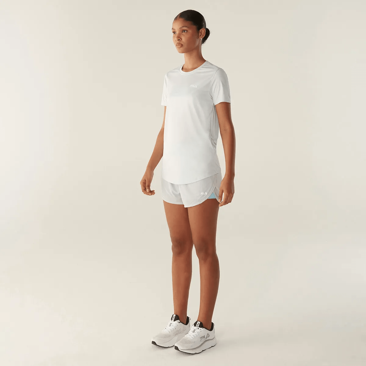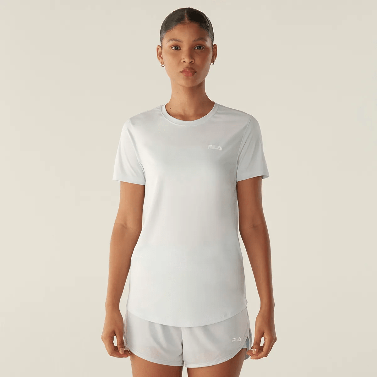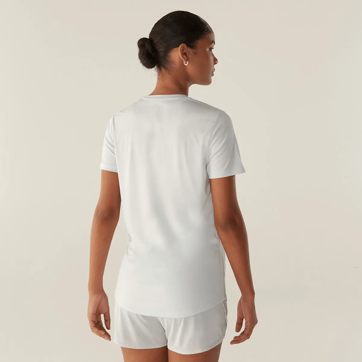 Camiseta feminina confeccionada em malha leve de poliéster elastizada com toque macio. Na modelagem regular alongada com manga curta, a peça contém as tecnologias POLYGIENE®, inovação que mantém o tecido fresco e limpo por mais tempo; a UV PROTECTION, que oferece proteção solar FPS 50+ dos raios UVA e UVB; e a FLOW, que mantém o corpo na temperatura ideal para a prática esportiva e fornece rápida secagem.