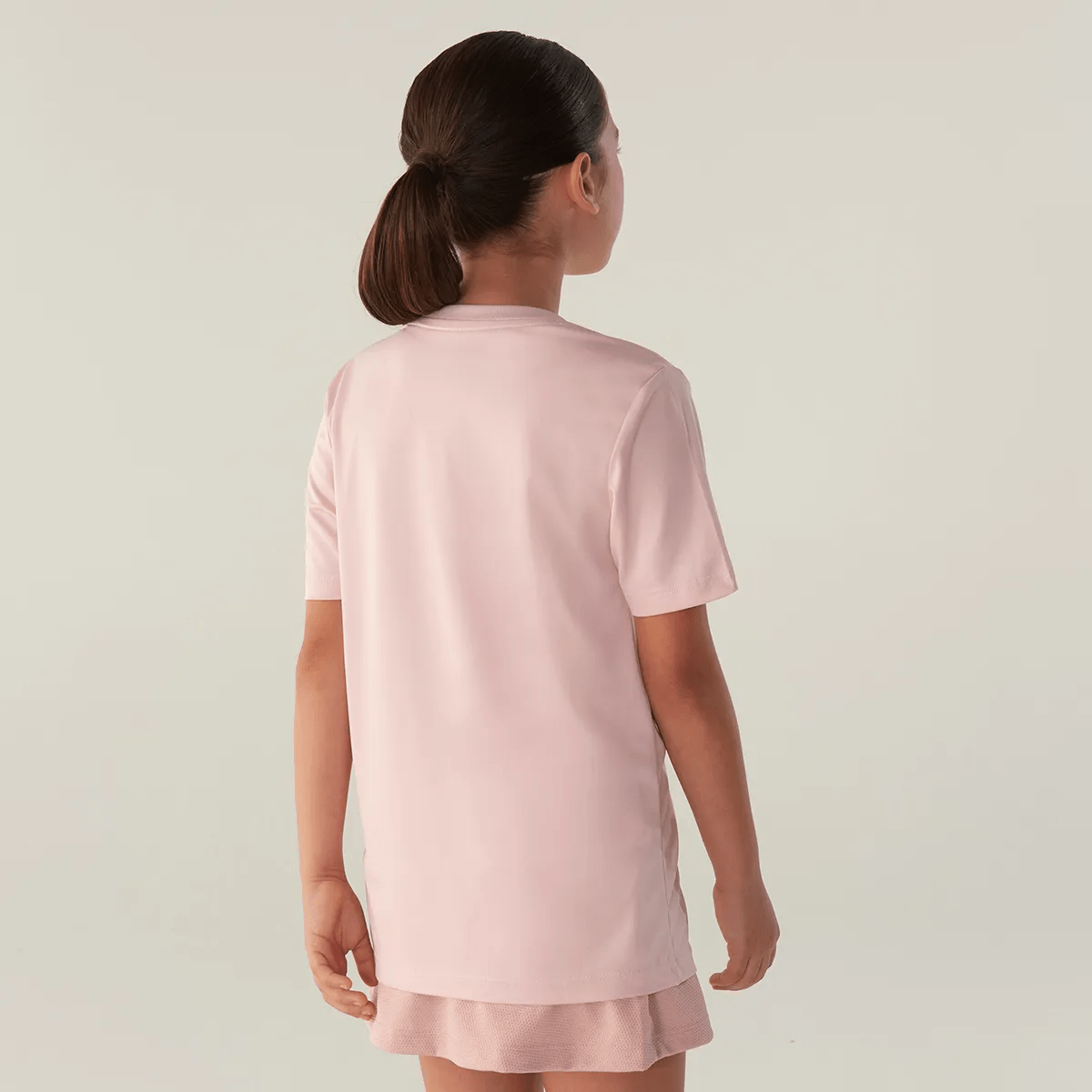 Camiseta unissex confeccionada em malha de poliéster com tecnologia POLYGIENE (antiodor), UV PROTECTION FPS 50+ (proteção solar) e FLOW, (respirabilidade e controle térmico). Na modelagem regular, a camiseta possui gola em ribana aplicada com cobre gola, além de ombros deslocados para frente. O logo FILA Letter vem estampado no peito e aplicado na lateral esquerda.