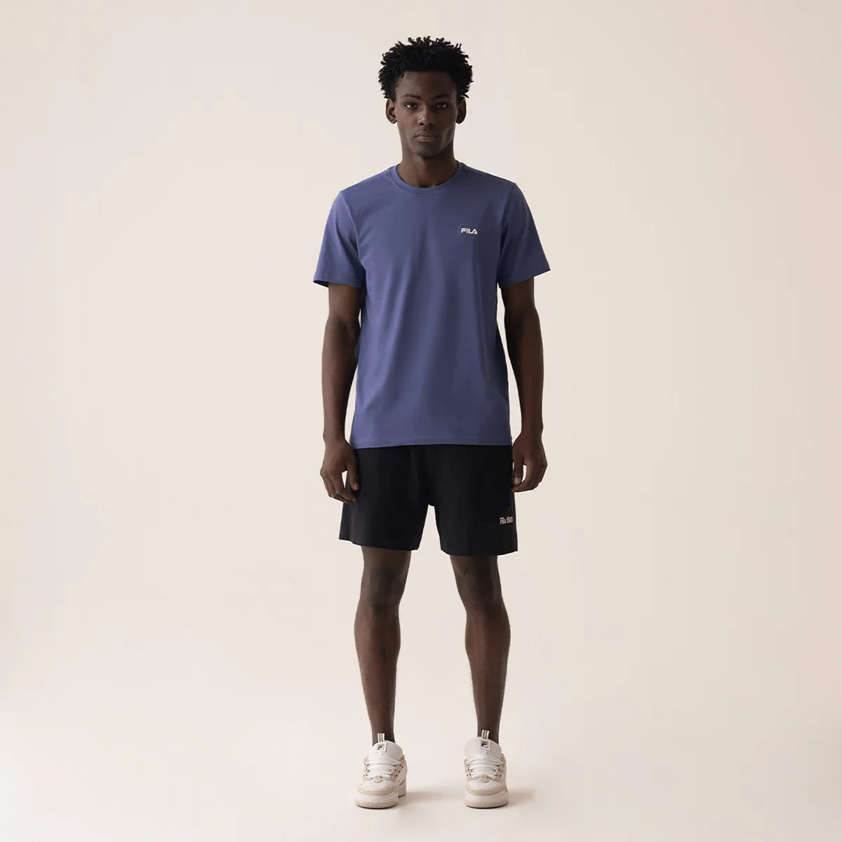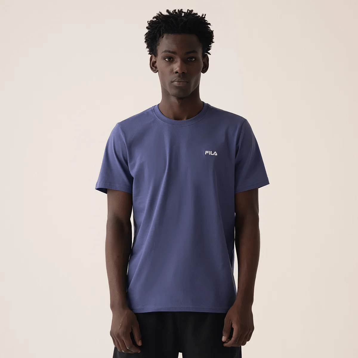 Camiseta masculina confeccionada em meia malha premium de algodão. Possui modelagem regular com manga curta, gola careca em ribana e mini patch FILA Linear bordado na parte frontal superior esquerda.