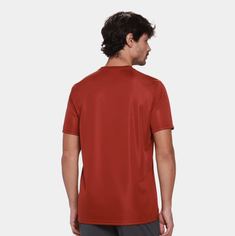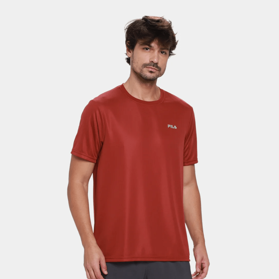 Camiseta masculina de modelagem regular em malha de poliéster reciclado. Ideal para treinos de baixa e média intensidade, a peça é respirável e conta com a tecnologia FLOW, que garante secagem rápida e respirabilidade. Possui gola em ribana, cobregola no mesmo tecido do corpo e ombros deslocados para a frente com acabamento em pesponto de duas agulhas. O logo FILA linear de 4 cm, aplicado no peito esquerdo, assina a peça.