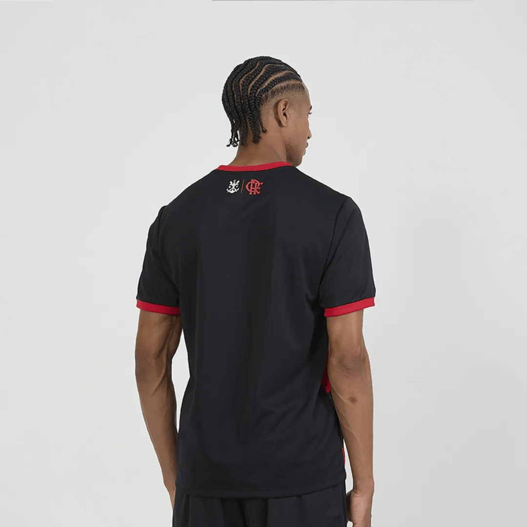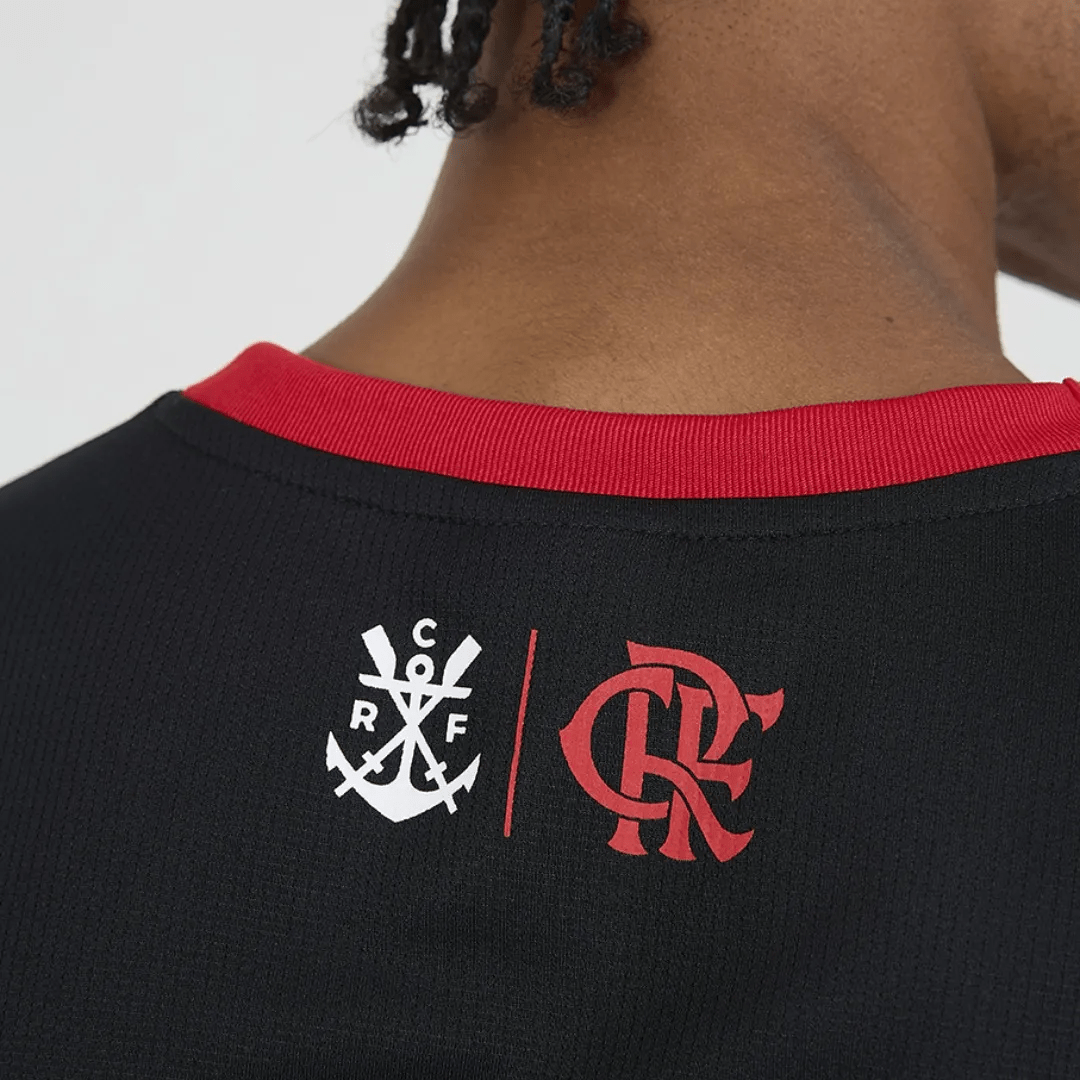 Camiseta rubro-negra confeccionada em Dry Max, tecido leve com excelente caimento, que proporciona conforto e alta respirabilidade, mantendo a pele seca. A peça traz estampa do escudo e assinatura do clube no peito, com detalhe em toque zero inspirado em ondas, que simula a vibração das listras rubro-negras, conferindo movimento e originalidade ao design.
