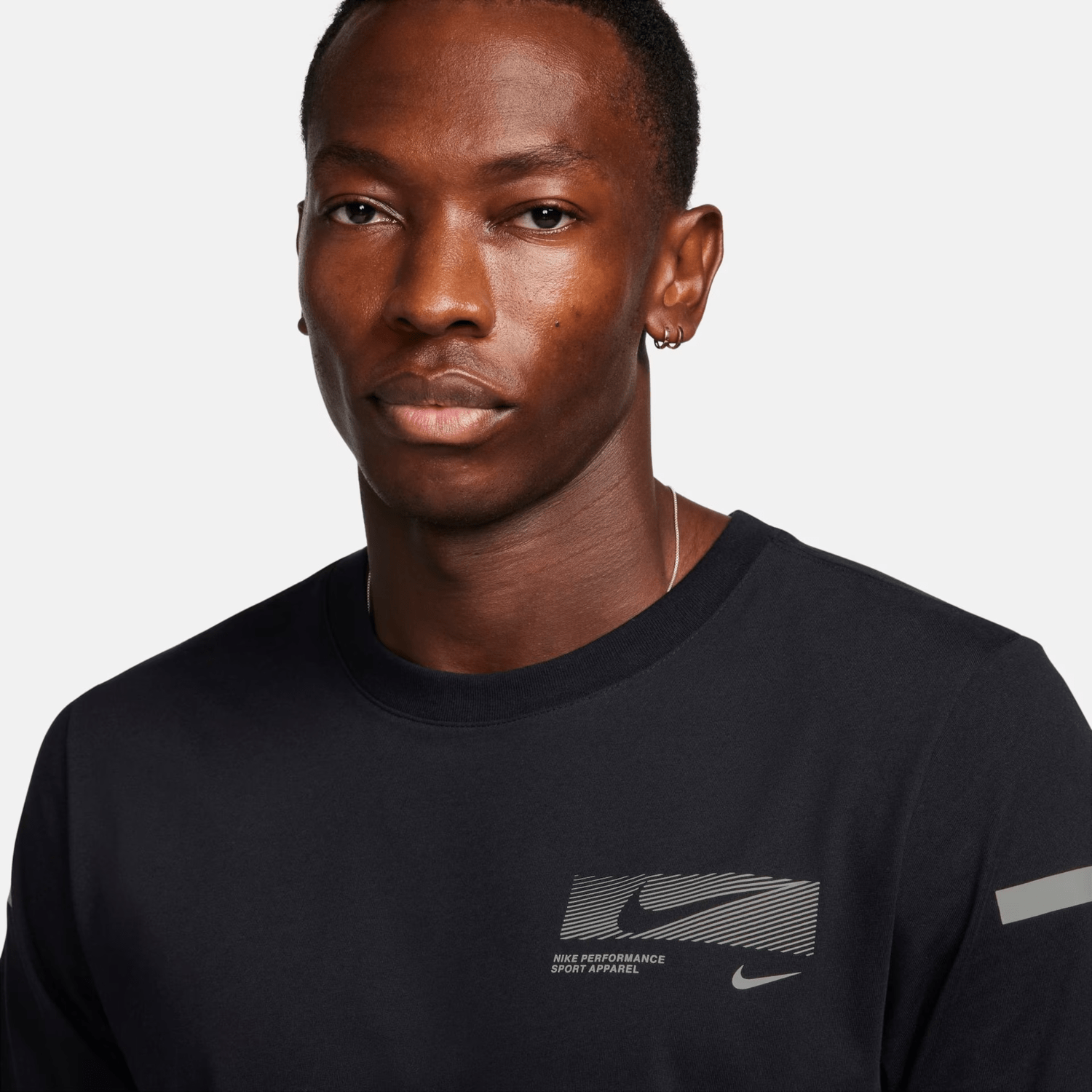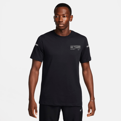 Enfrente cada repetição e cada passada com confiança com esta camiseta Nike. Tecnologia Nike Dri-FIT absorve o suor da sua pele para evaporação mais rápida, ajudando a manter você seco e confortável. O gráfico é um borrão, inspirando você a sempre se mover da melhor forma.