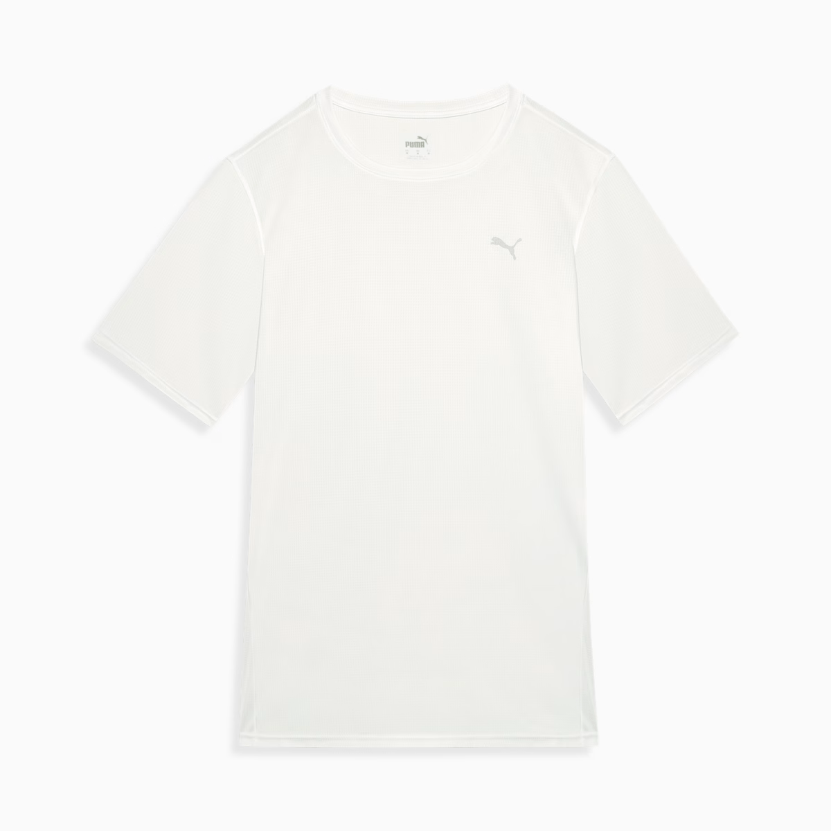 Camiseta masculina básica com costura lateral deslocada para frente para melhor vestibilidade. Tecido de malha texturizada em canaletas 100% Poliéster. Tecido com tecnologia Drycell: Tecnologia PUMA de alta performance com propriedades de absorção de umidade que mantém o corpo seco durante o treino. Logo PUMA do lado esquerdo do peito com tecnologia refletiva.