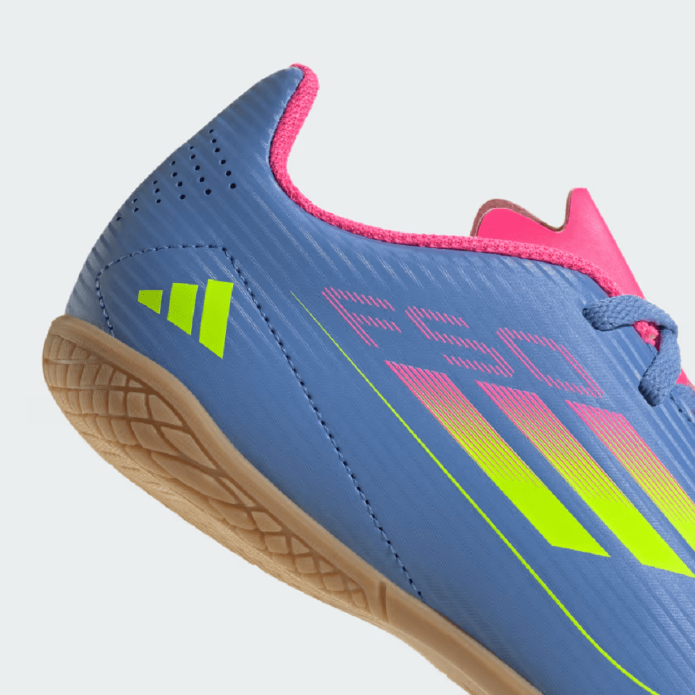 Ultrapasse seus limites com a leveza do calçado adidas F50, projetado para velocidade. Esta chuteira infantil Club mantém você confortável em movimento com o cabedal de suporte Fiberskin e a língua perfurada. Por baixo, o solado de borracha non-marking ajuda você a atingir extrema agilidade em superfícies lisas indoor. Este produto contém pelo menos 20% de materiais reciclados. Ao escolher o reciclado, podemos reutilizar materiais já criados, o que ajuda a reduzir o desperdício e a nossa dependência de recursos finitos, além de reduzir a pegada dos produtos que fabricamos.