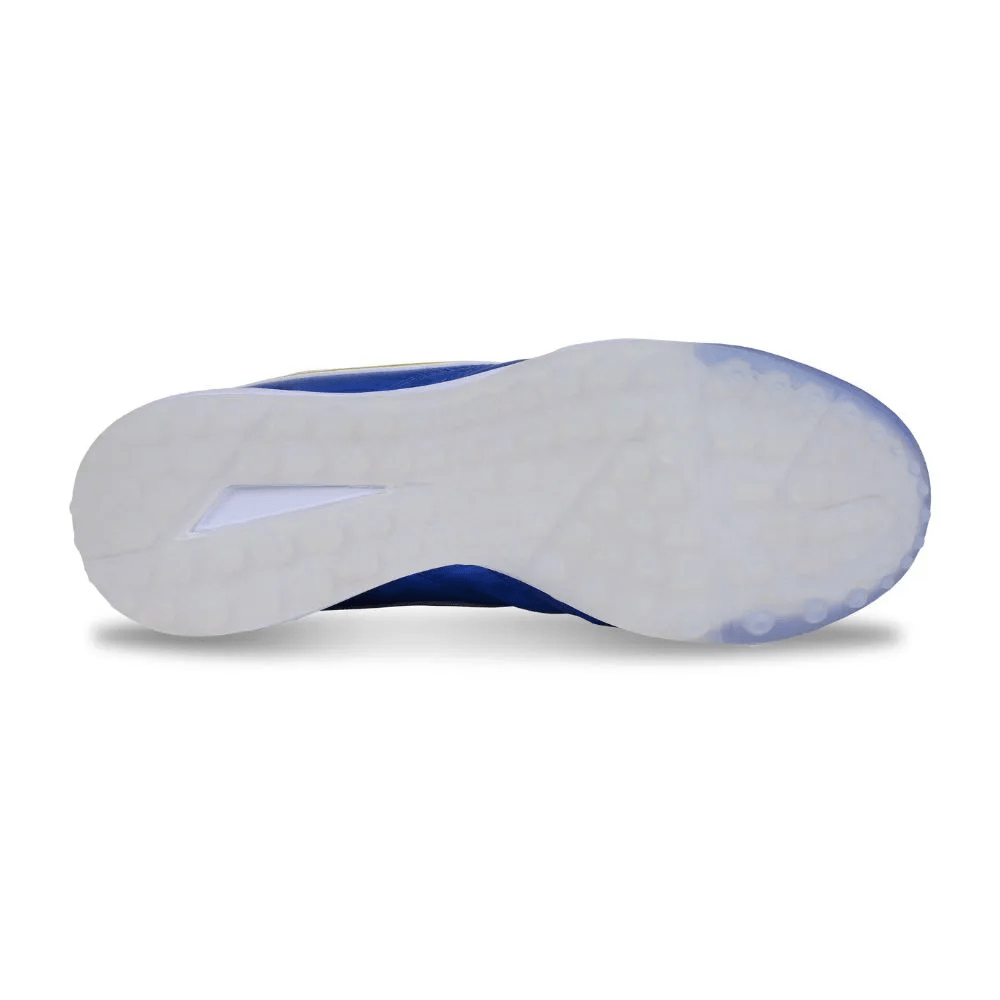Solado emborrachado com pontos de giro: garante tração, estabilidade e agilidade em gramados sintéticos.