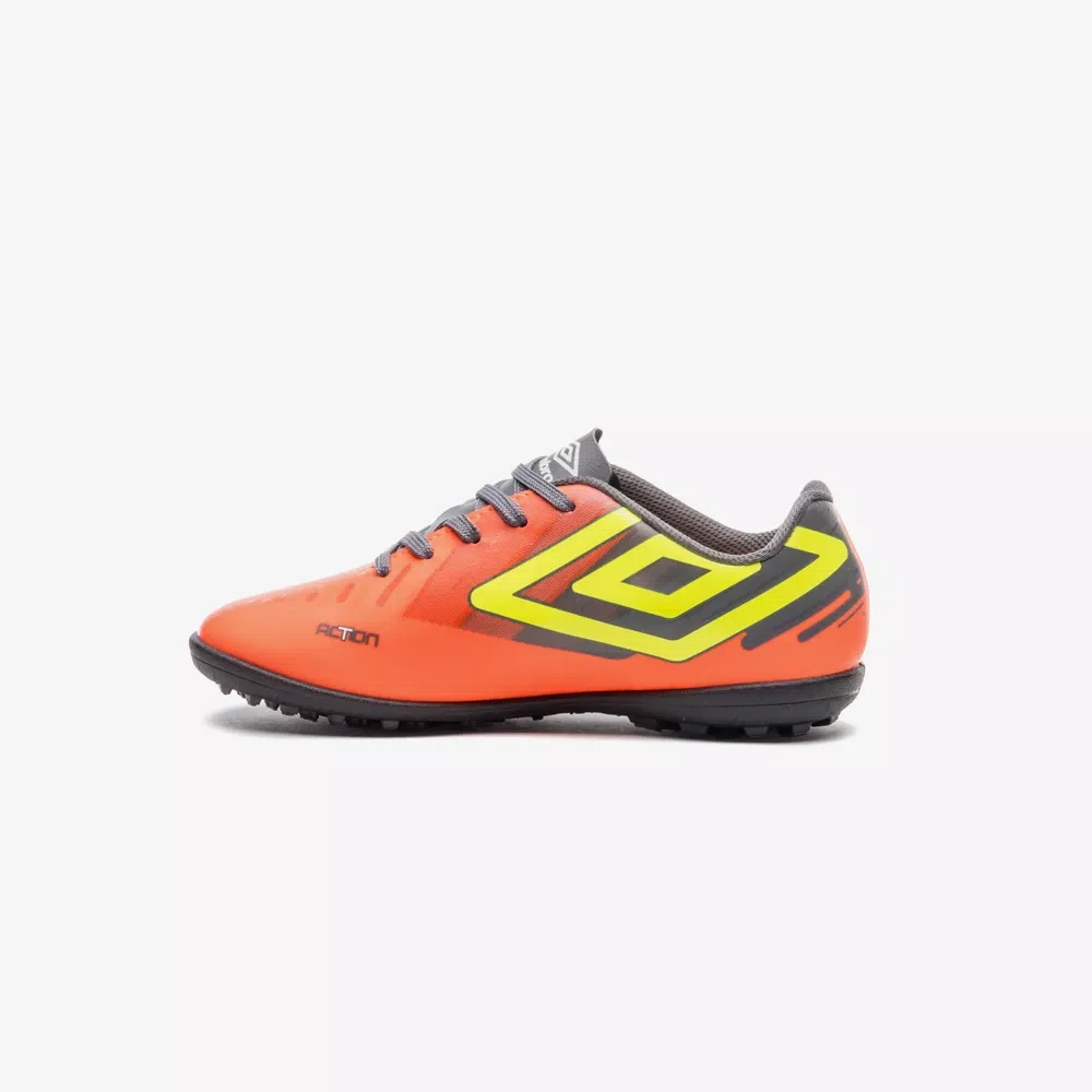 Indicada para jogadores juvenis iniciantes que se destacam nos treinos e partidas, a Chuteira Society Umbro Action Jr exibe artes gráficas personalizadas aplicadas em camadas, com efeito degradê, para um visual autêntico e moderno no melhor estilo Umbro. Cabedal confeccionado em material laminado de fácil limpeza e manutenção. Possui grafismos em “layers” com aplicação de verniz incolor sobre as artes, Diamante Umbro em destaque na lateral, assinatura do modelo na parte frontal e palmilha interna macia em EVA com tecido forrado. O solado de society HG é composto por blenda de PVC e TPU, que oferece aderência ao solo e durabilidade.
