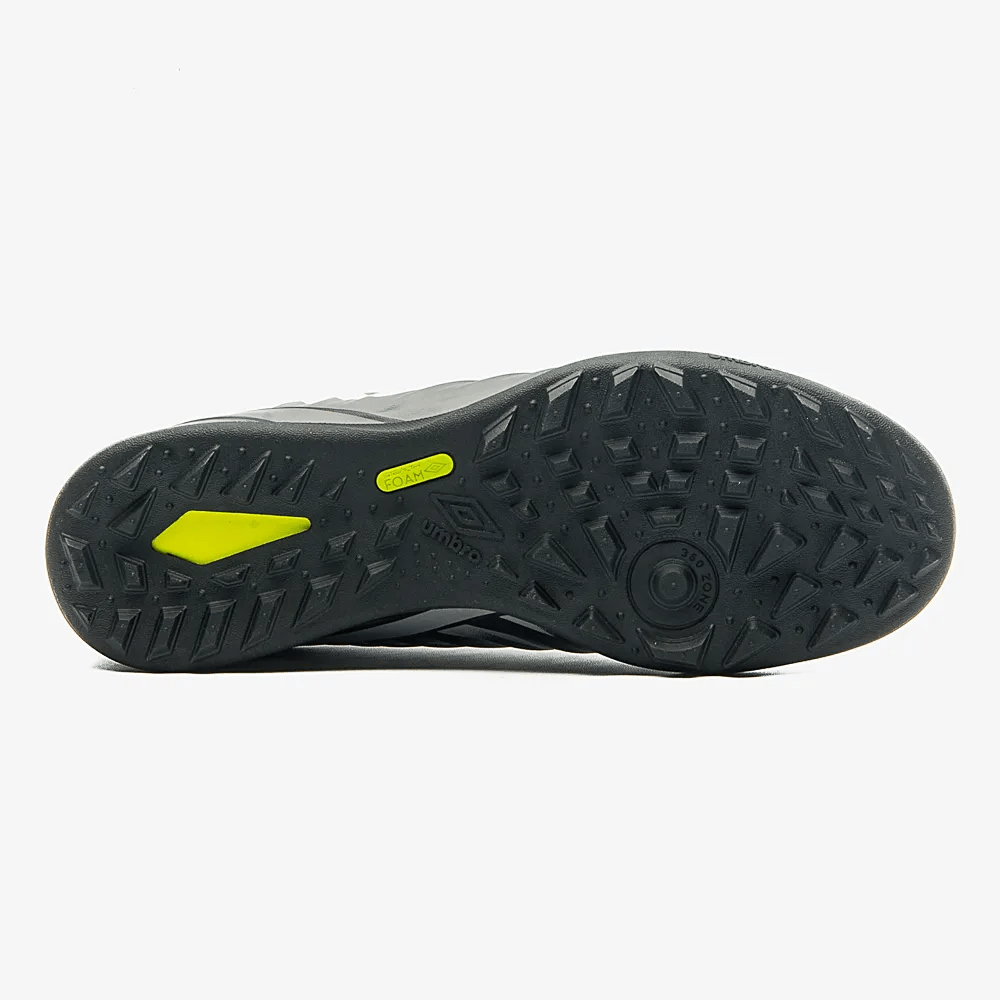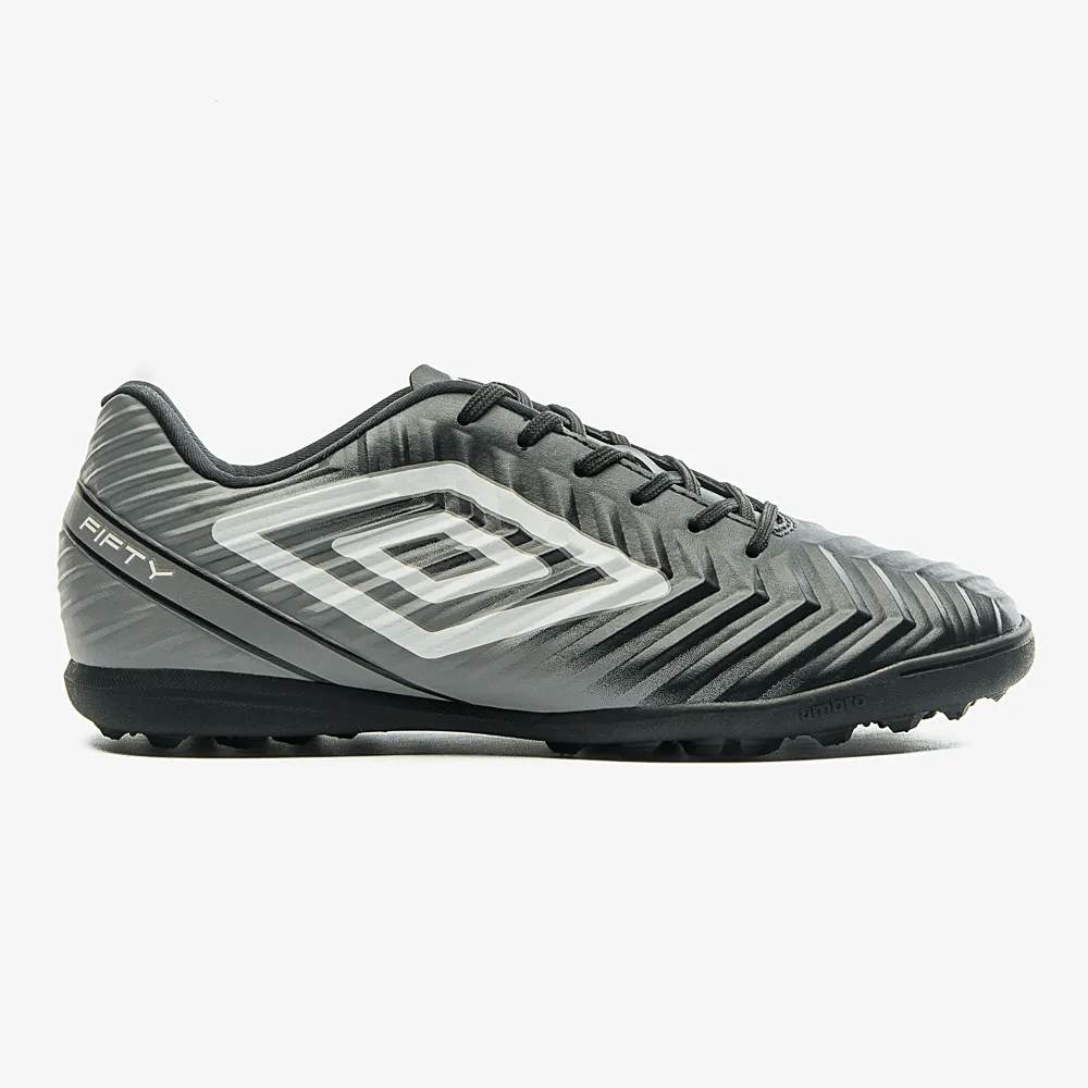 A Chuteira Society Umbro Fifty V é inspirada no modelo Fifty 3 dos anos 2000. O cabedal conta com texturas proeminentes e marcantes, que intensificam o atrito com a bola. Possui forro traseiro em Mesh e palmilha macia em EVA. O solado de society HG é construído em borracha com travas posicionadas e aplicação da tecnologia STEALTH de amortecimento no calcanhar.