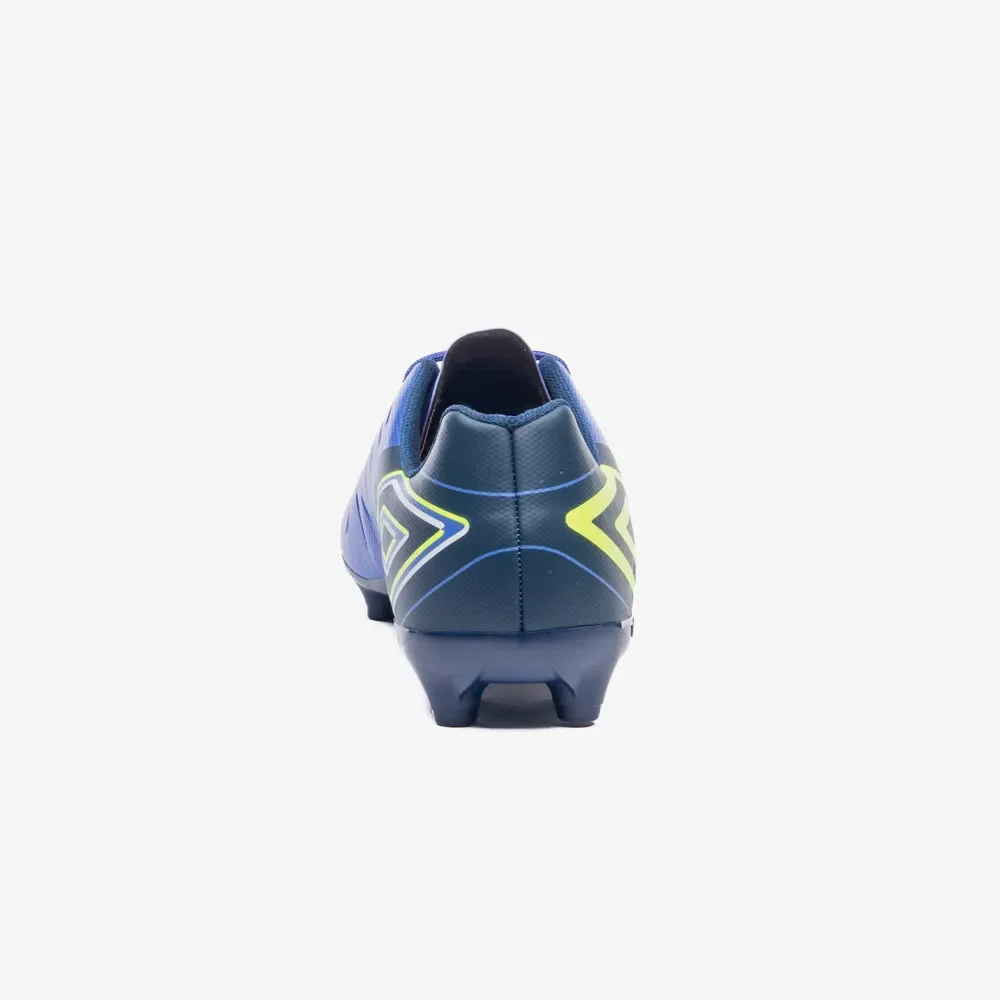 Indicada para jogadores iniciantes, a Chuteira Campo Umbro Fifty VI League apresenta um design dividido em duas cores. A boca do calçado é deslocada para o lado externo, proporcionando um ajuste adaptável e confortável para diferentes tipos de pé, além de priorizar a área de chute sem sobreposição dos cadarços. O cabedal é confeccionado em material laminado com textura e alta frequência frontal que melhora o grip e o domínio da bola. O forro traseiro em mesh, com acabamento luvado no colarinho, garante maior resistência à abrasão. Possui palmilha em EVA macia e forrada em tecido, solado de campo FG com 14 travas em PVC, e costura de reforço na parte frontal.