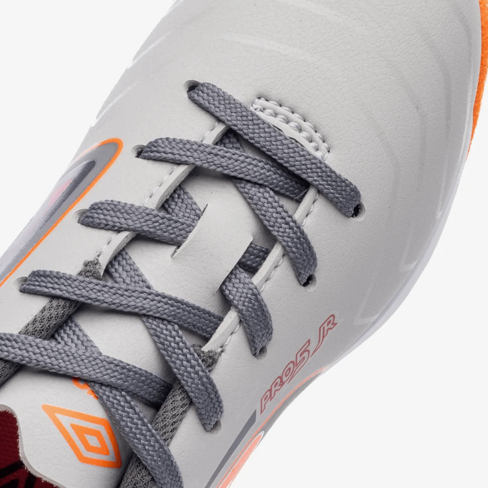 Seja o astro infantil das quadras com a Chuteira Futsal Umbro Pro 5 Jr. Ela é perfeita para as crianças e adolescentes que procuram conforto e qualidade para melhorar seu jogo. O cabedal é construído em material laminado emborrachado com grafismo personalizado e sistema de lingueta convencional. O solado de futsal possui entressola super macia em EVA de ponta a ponta com soleta em borracha, que proporciona maior durabilidade e aderência ao solo.