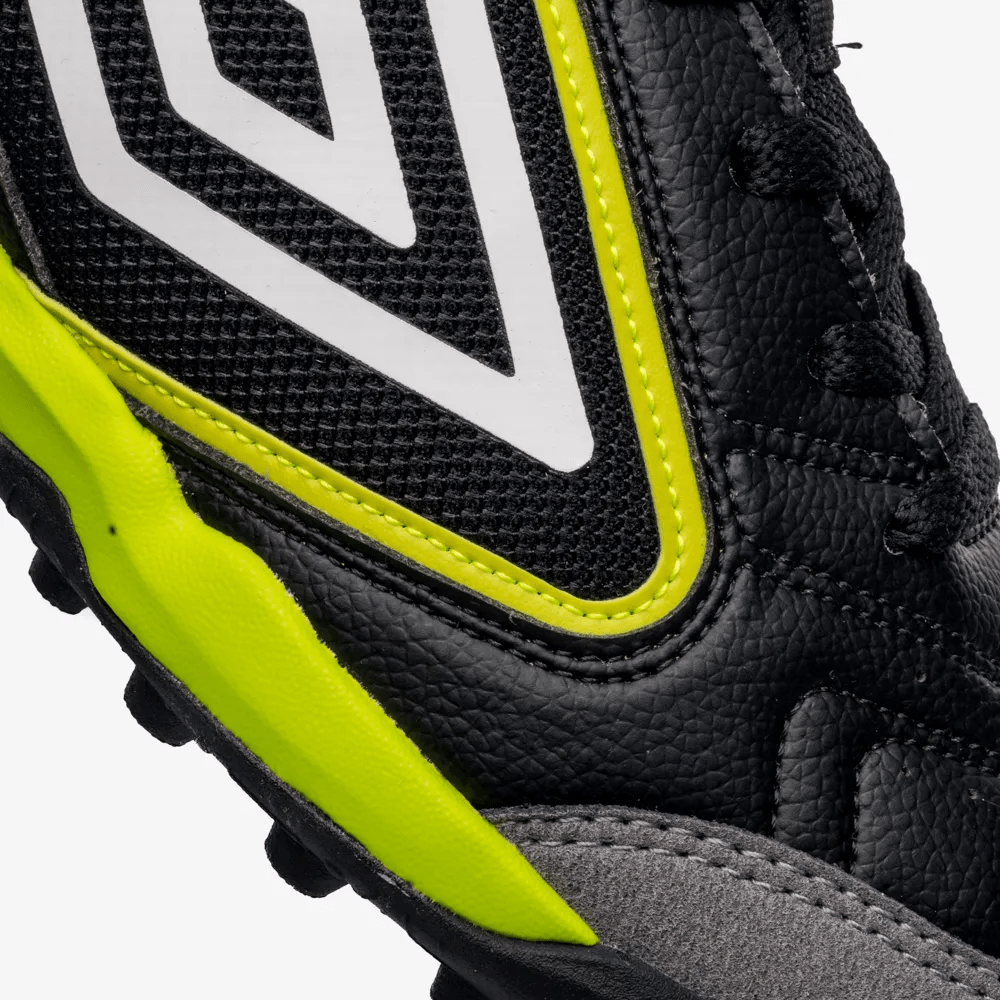 A Chuteira Society Umbro Pro Challenge Uptake traz inovação e desempenho para o futebol society. Seu design inspirado nos tênis court alia estilo e funcionalidade, com cabedal assimétrico feito em material sintético, camurça e microfibra extra macia na parte frontal. A tecnologia Soft Blue na palmilha garante amortecimento, enquanto a entressola em EVA e o solado em borracha antiderrapante com Vortex Grip e travas cônicas proporcionam máxima tração e estabilidade.