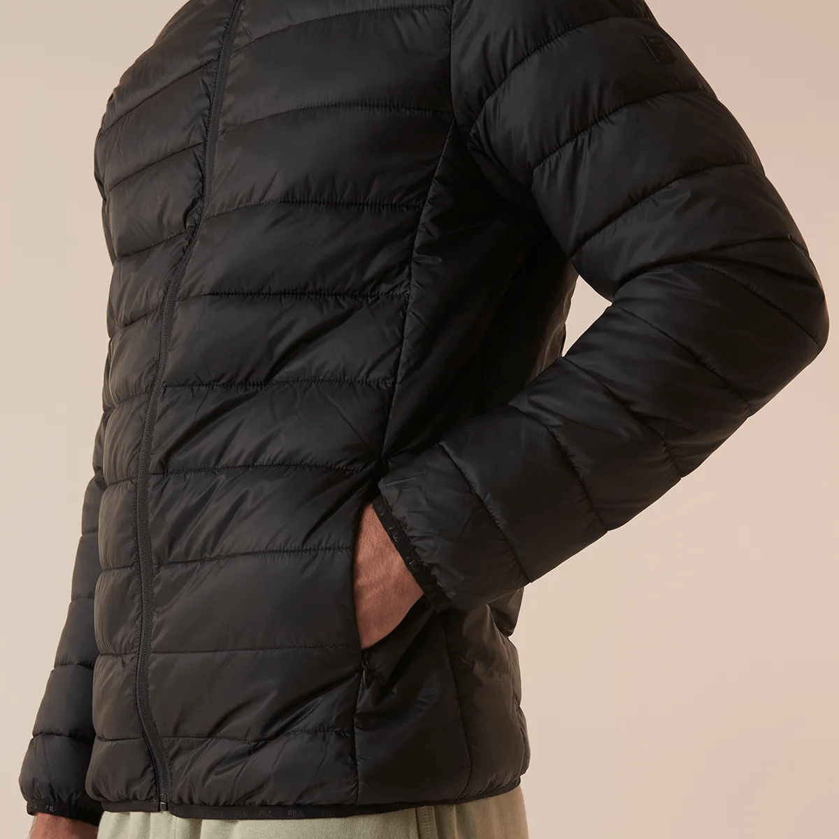 A Jaqueta Masculina FILA Touch Light oferece versatilidade e praticidade com seu design atemporal. Confeccionada em tecido plano de poliéster com enchimento de baixa densidade, apresenta modelagem regular, bolsos invisíveis com forro em poliéster e acabamento em viés de elástico na barra e punhos. Abertura frontal com zíper invertido e puxador personalizado. A Jaqueta é packable, acompanha um saquinho compacto de 20x30 cm. Patch F-Box na manga esquerda destaca a marca.