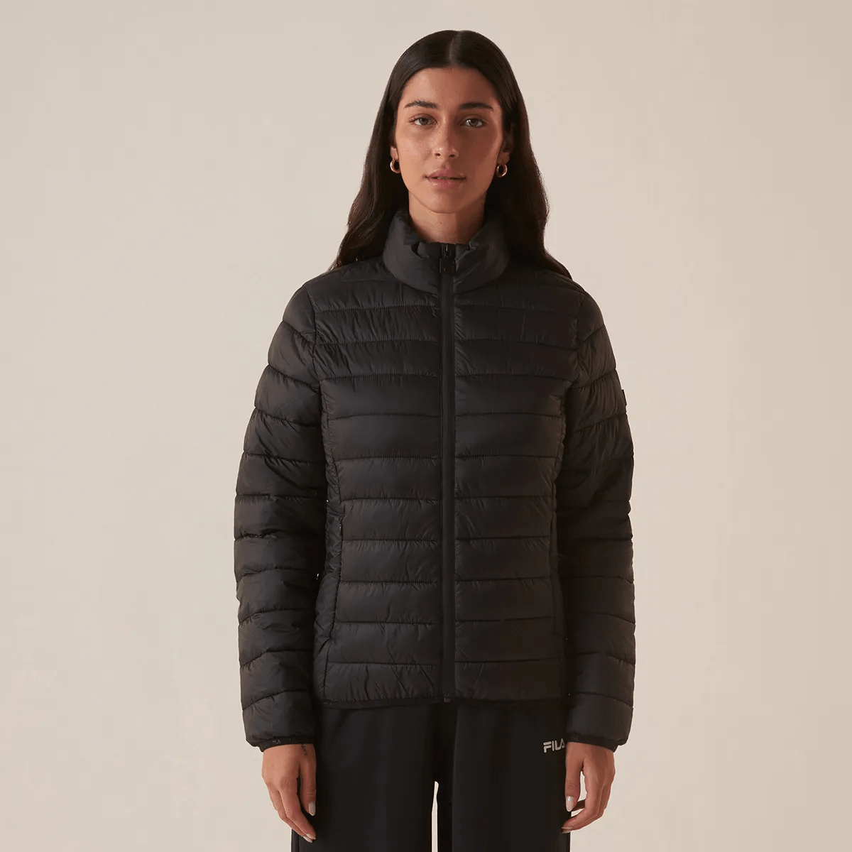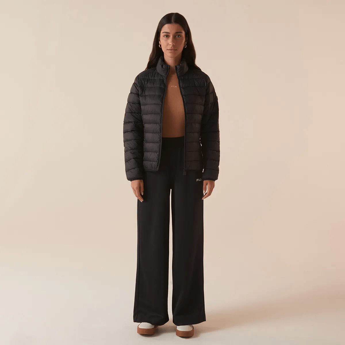 A Jaqueta Feminina FILA Touch Light é prática e versátil, ideal para o dia a dia. Com modelagem regular, é confeccionada em tecido plano de poliéster com enchimento de baixa densidade, garantindo leveza e conforto. Possui bolsos invisíveis com forro em poliéster, abertura frontal com zíper invertido e puxador personalizado, além de acabamento em viés de elástico na barra e punhos. Acompanha um saquinho compacto de 20x30 cm. Patch F-Box na manga esquerda completa o design.