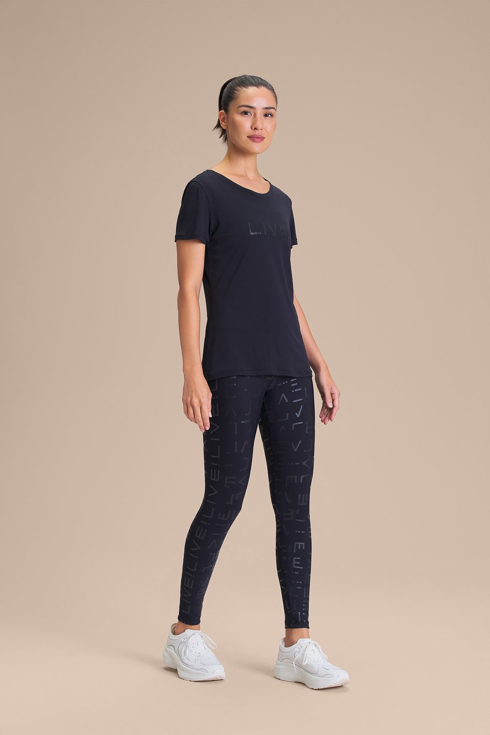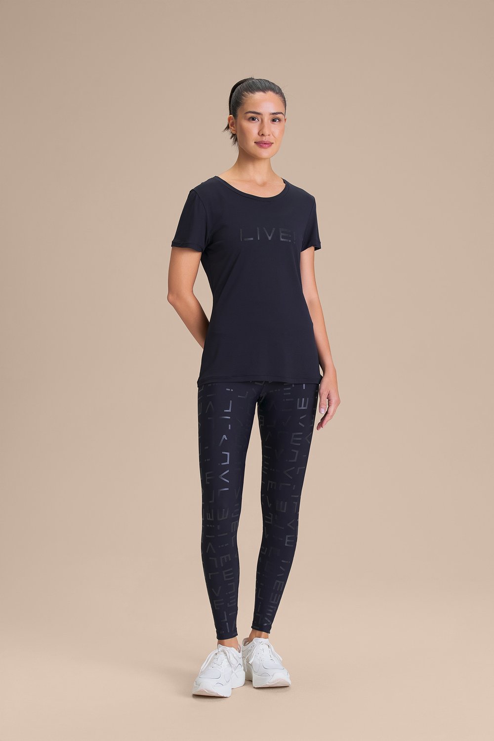 A Legging Icon possui bolso funcional no cós traseiro, ideal para armazenar o celular. Confeccionado em tecido de média compressão com proteção UV 50+ e tecnologia inclusiva LYCRA® ADAPTIV, permite que a modelagem se adapte ao corpo com máximo conforto e proporciona zero transparência. A exclusiva estampa LIVE! Icon, com leve brilho, adiciona autenticidade ao visual.