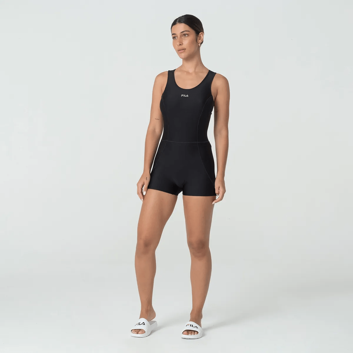 O Maiô Long Feminino Fila Tri é confeccionado em estilo macaquinho e modelo nadador. A peça com forro interno traz as tecnologias: UV PROTECTION, que oferece proteção solar FPS 50+; RESISTÊNCIA AO CLORO para proporcionar maior durabilidade; e FLOW (elimina com rapidez o suor).