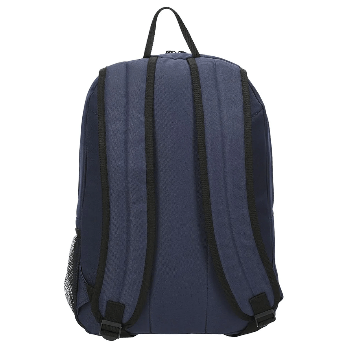 Mochila com ziper duplo no compartimento principal, porta notebook, bolso frontal com organizador interno, forro acolchoado na parte de trás e detalhes em cores contrastantes