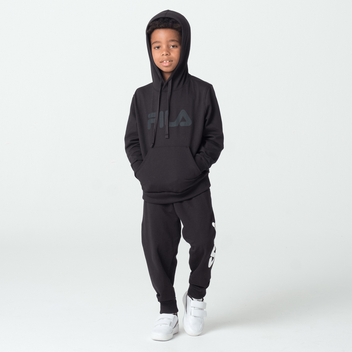 Casaco com capuz juvenil confeccionado em moletom de algodão com poliéster. Modelagem regular com manga longa. Produto ecológico com selo BCI (Better Cotton Initiative) e certificado Oeko-Tex, que testifica o não uso de químicos nocivos na sua fabricação. Possui punhos e barra em ribana, ajuste de cordão no capuz, cavas e ombros pespontados, bolso canguru frontal e maxi estampa Fila Letter bicolor centralizada na parte frontal.