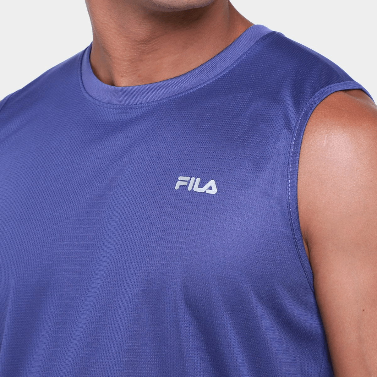 Regata masculina confeccionada em malha de poliéster reciclado, indicada para treinos de baixa e média intensidade. Modelagem regular com ombros largos e gola careca em ribana. Produto ecológico feito para causar menos impacto ao meio ambiente, colaborando com a sustentabilidade do planeta. Seu tecido contém a tecnologia FLOW, que proporciona rapidez e evasão do suor, mantendo o corpo na temperatura ideal para a prática esportiva. Possui cavas com acabamento em viés pespontado e logotipo Fila Letter aplicado na parte frontal esquerda superior.