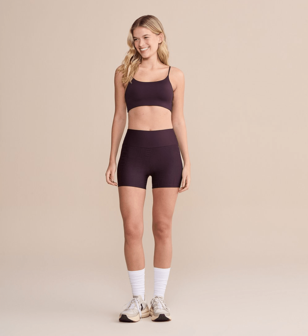 O shorts fit possui modelagem tradicional com bumbum duplo nas variantes claras, garantindo maior cobertura e evitando transparência durante a prática esportiva.