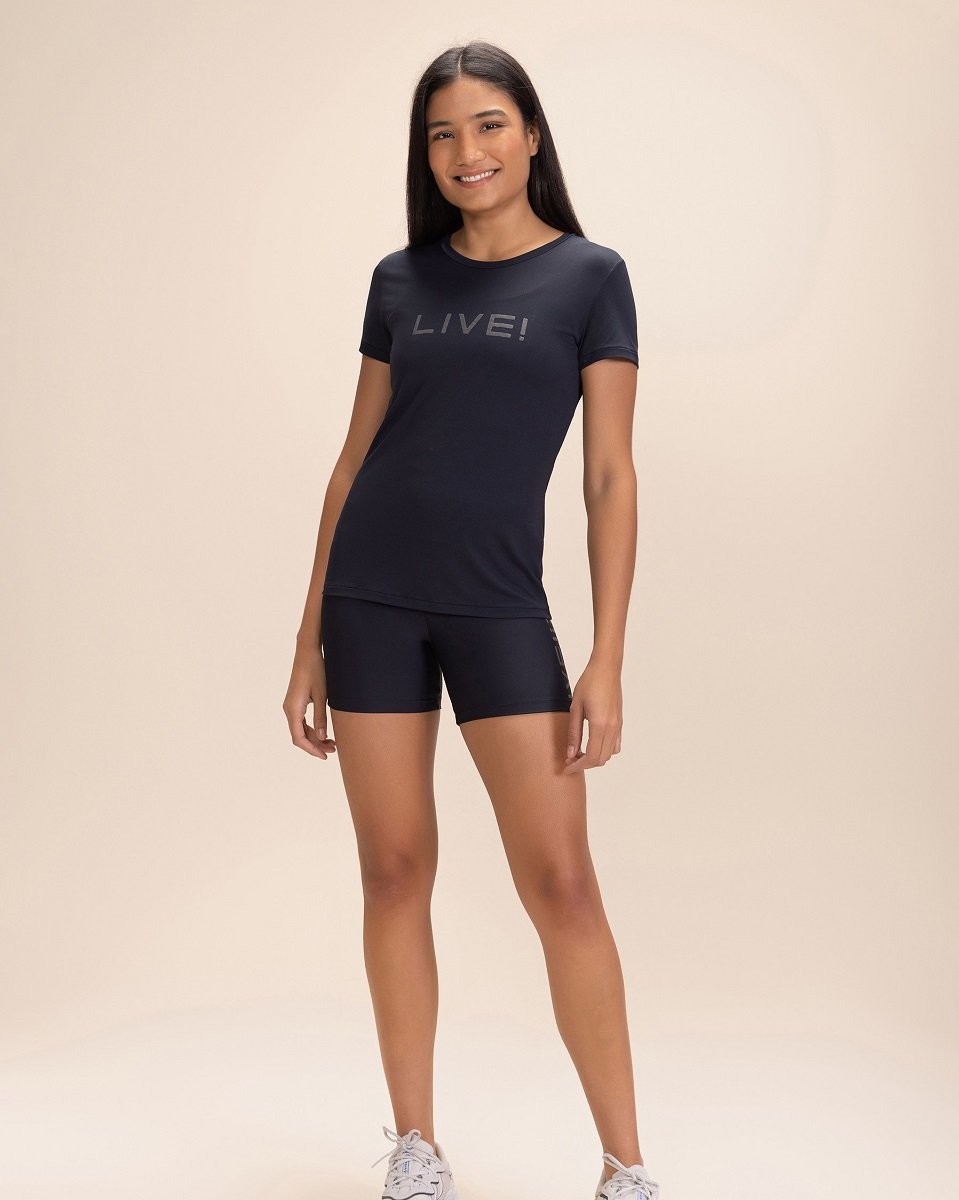O top Live proporciona suporte ideal para treinos dinâmicos, e a camiseta Live é uma opção leve e confortável para qualquer ocasião.