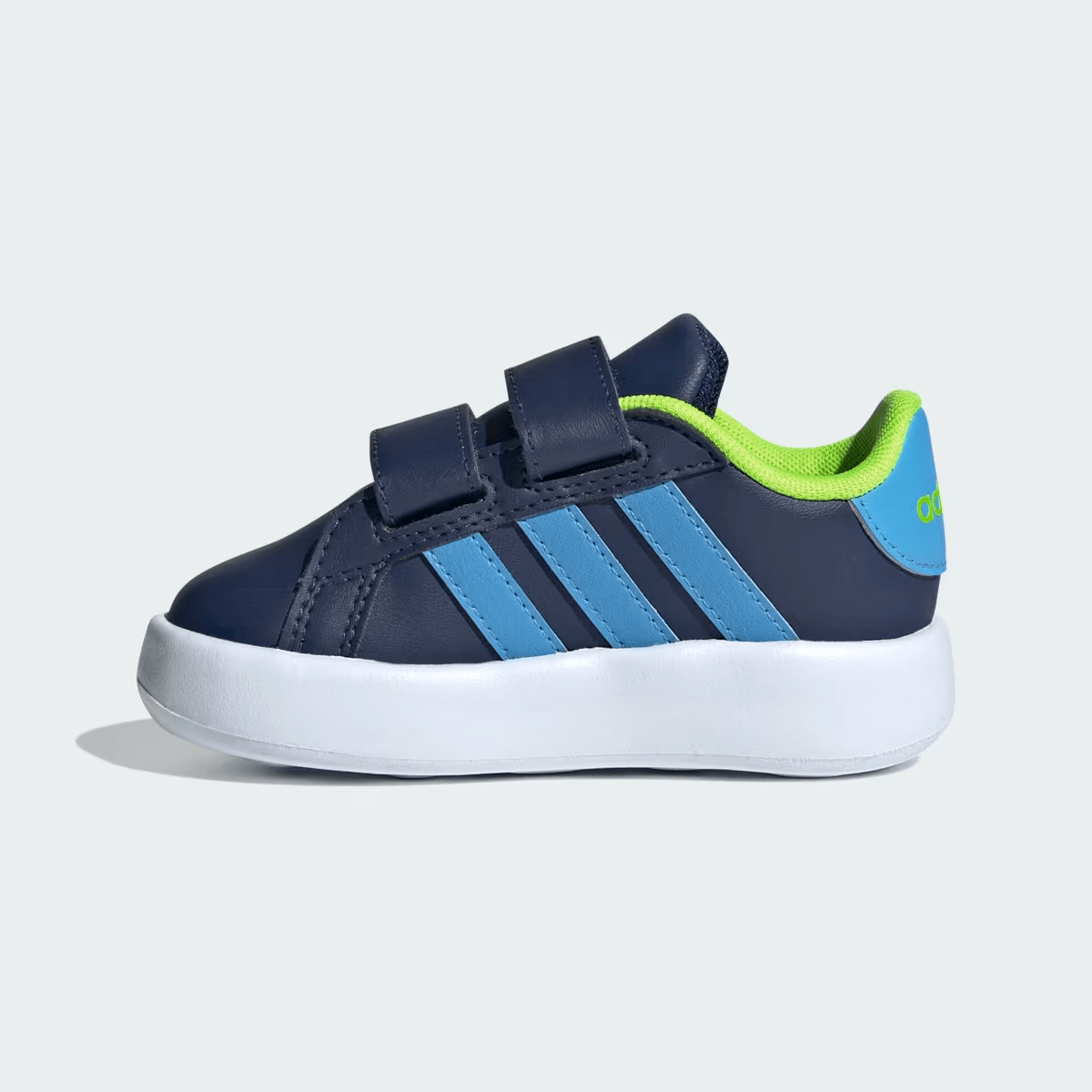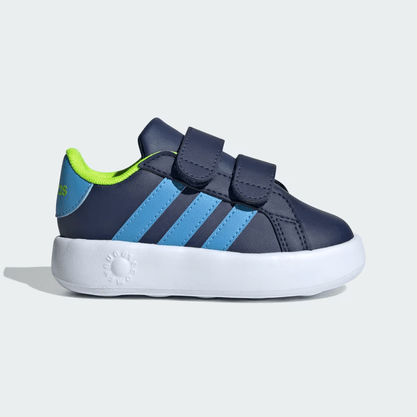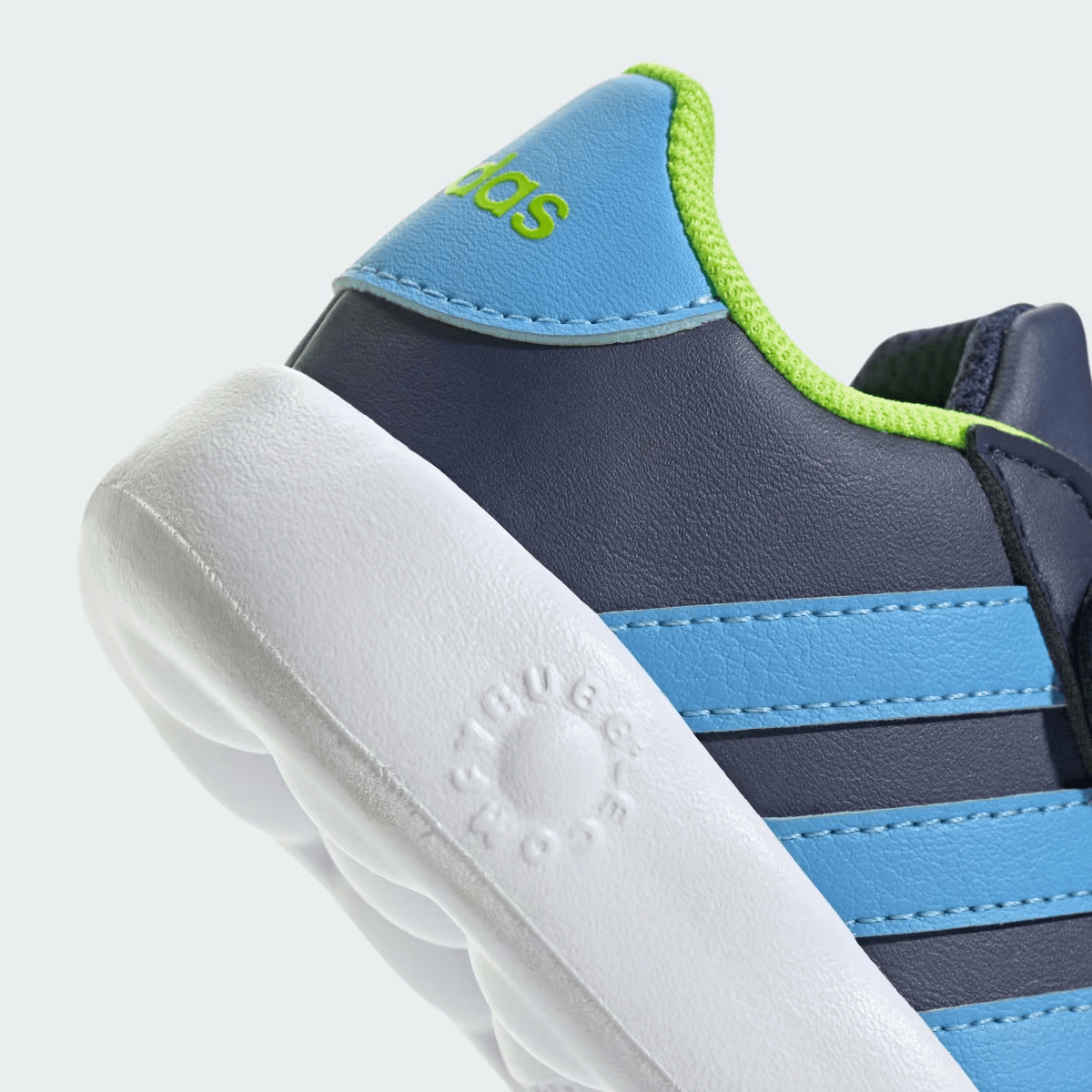Se os bebês pudessem falar, eles com certeza expressariam seu amor por este tênis adidas Grand Court. As tiras de velcro facilitam na hora de calçar, enquanto o solado em EVA em formato de bolhas mantém os pezinhos confortáveis. Seja para engatinhar, começar a ficar de pé ou dar seus primeiros passos, as cores divertidas e as Três Listras clássicas tornam este tênis a companhia perfeita para qualquer brincadeira.