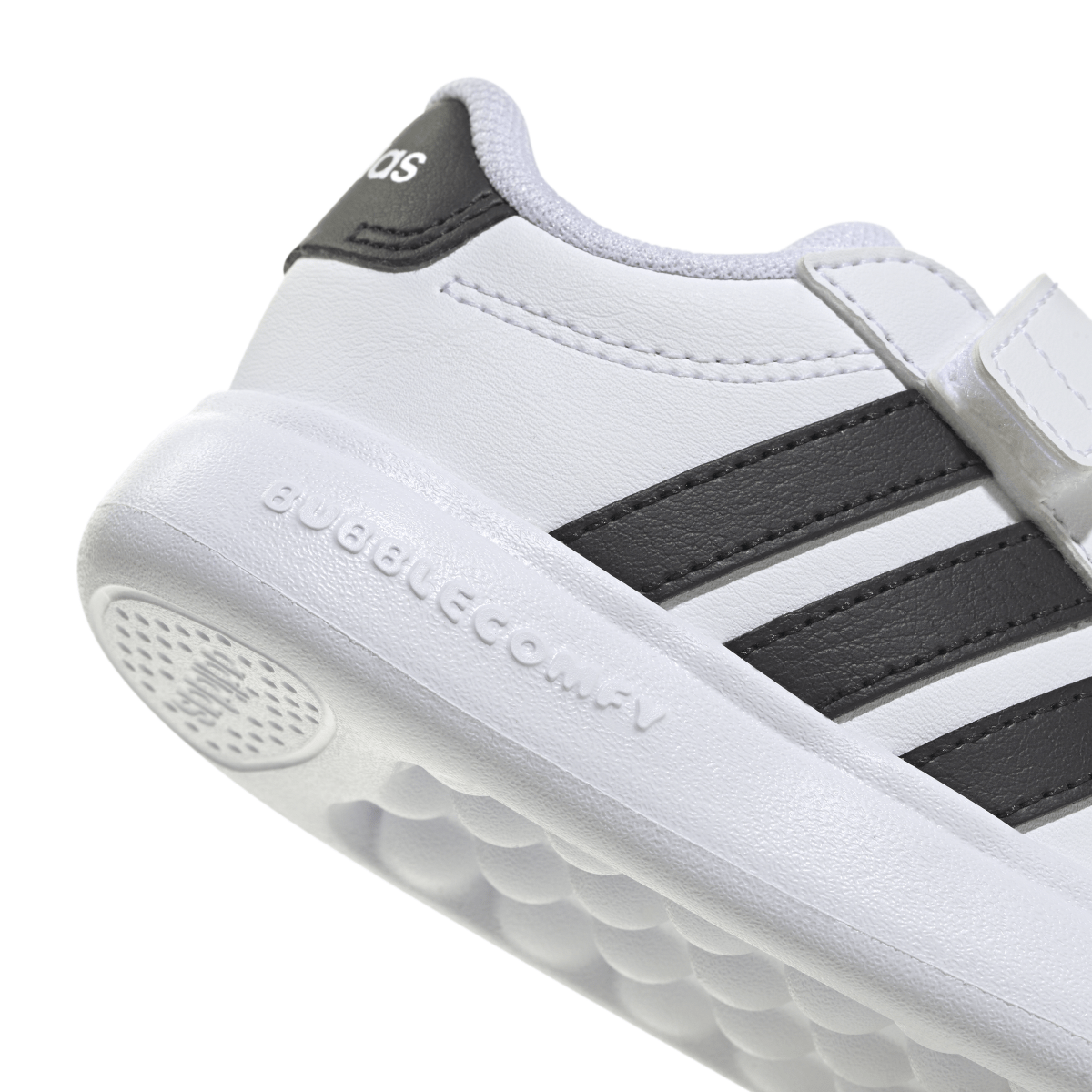 O Tênis Infantil adidas Bubble foi desenvolvido pensando nas crianças que estão sempre em movimento, garantindo conforto, leveza e praticidade em cada passo. O solado em EVA macio proporciona uma sensação suave e amortecida, semelhante a caminhar sobre nuvens, permitindo o movimento natural dos pés durante as brincadeiras. O modelo conta com cabedal resistente e materiais duráveis, ideais para acompanhar o ritmo das aventuras diárias. As tiras de velcro facilitam o calce, oferecendo ajuste prático e seguro sem complicações. Além disso, o design traz cores vibrantes e detalhes texturizados, despertando a imaginação dos pequenos, enquanto o solado em formato de bolhas adiciona um toque divertido e moderno. Um modelo que combina estilo, conforto e funcionalidade, perfeito para o dia a dia das crianças.