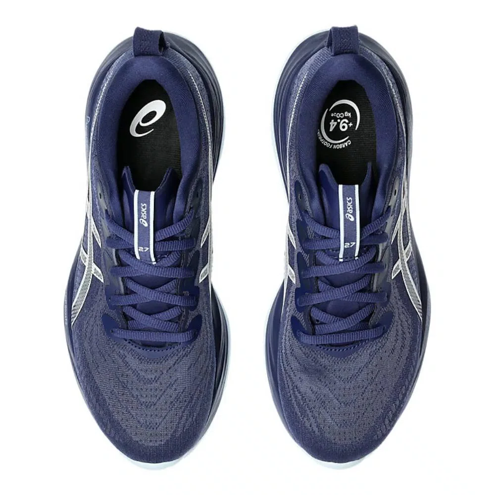 Experimente a melhor sensação em conforto com o GEL-CUMULUS™ 27, ele é a escolha versátil para diversos treinos e distâncias. O FF BLAST™ PLUS e a tecnologia PureGEL™ estão estrategicamente posicionados na entressola, que combinados ajudam a criar aterrissagens mais suaves e uma pisada mais energizada durante a corrida. Além disso, o solado em FLUIDRIDE™ ajuda na eficiência entre as passadas. Tecnologia FF BLAST™ PLUS. O amortecimento proporciona absorção leve de impacto e uma recuperação responsiva Tecnologia PureGEL™ proporciona amortecimento leve e aterrissagens mais suaves. Cabedal em Engineered Mesh melhora a respirabilidade. Detalhes refletivos projetado para ajudar a melhorar a visibilidade. A palmilha é confeccionada com um processo de tingimento que reduz o uso de água em aproximadamente 33% e as emissões de carbono em aproximadamente 45% se comparada às tecnologias de tingimento convencional. Pelo menos 75% do material principal do cabedal é feito com materiais reciclados para reduzir desperdícios e emissões de carbono. Palmilha OrthoLite™ X-30 fornece conforto suave ao pisar. Puxador em Knit traseiro para facilitar o calce.