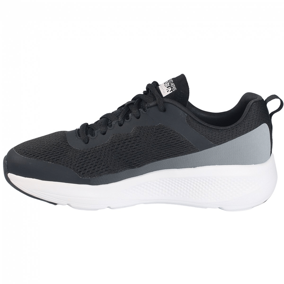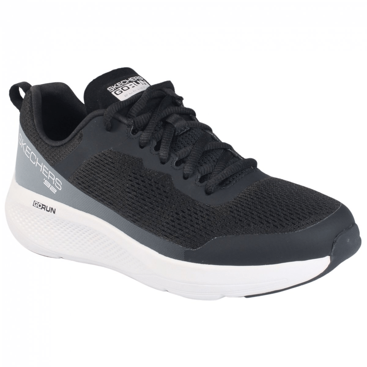 Tênis Skechers Go Run Elevate confeccionado em material têxtil. Modelo de bico redondo, fechamento por cadarço e recortes em material alternativo pelo cabedal. Solado emborrachado antiderrapante com 3,5 cm de altura e forro em material têxtil.