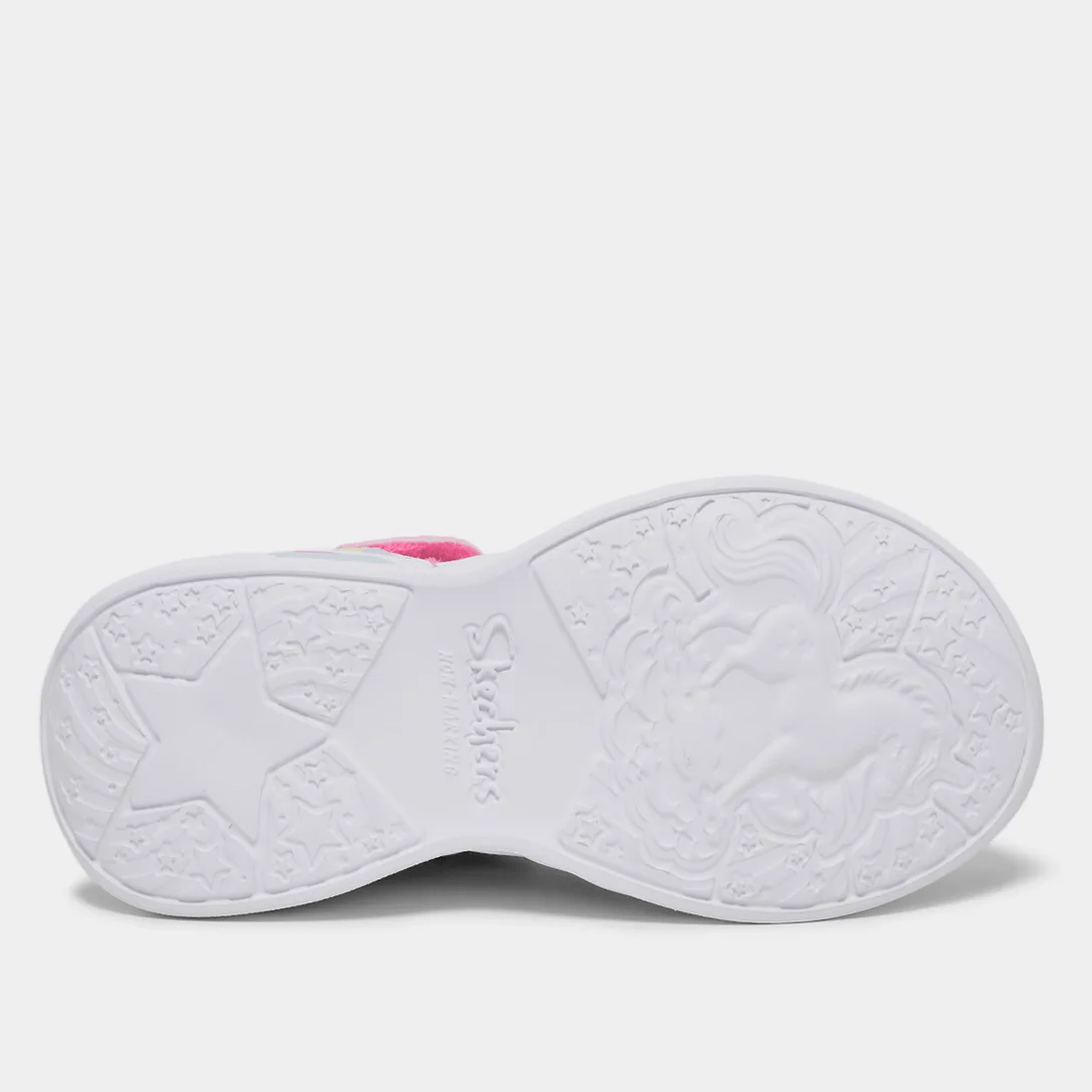 É pra pular, brincar e se divertir! O Tênis Infantil Skechers Unicorn Dreams Wis é a escolha certa para acompanhar as aventuras da sua pequena. Garante conforto e muito estilo. Confeccionado em material resistente, tem solado emborrachado, palmilha macia, cadarço ajustável e tira autocolante para calce fácil. Esse tênis infantil menina exibe design com recortes modernos bicolor e costura reforçada, além de estampa fofa de unicórnio.