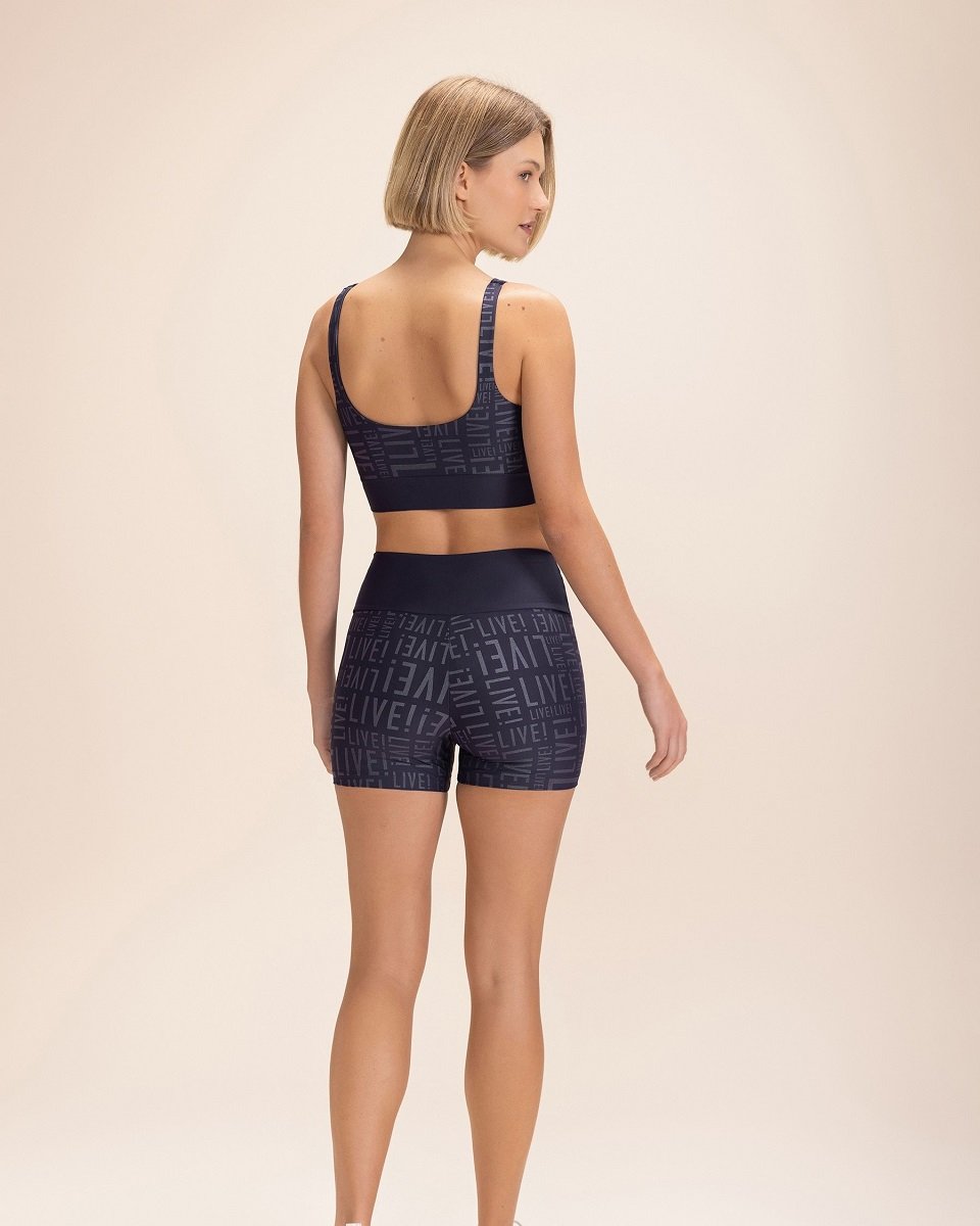 O top signature da marca LIVE! LIVE! é moderno. Sua modelagem com decote profundo nas costas valoriza a silhueta durante as práticas esportivas.